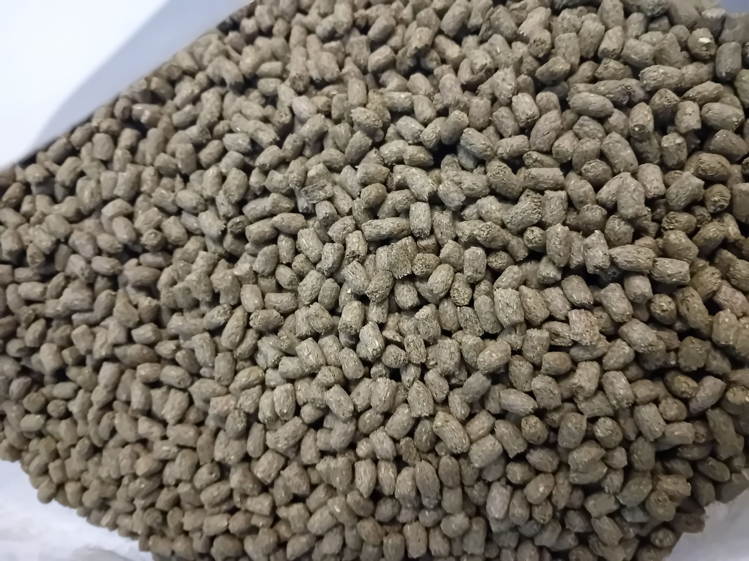 Contains Vit C, Wheatfeed, Soya bean hulls, Alfalfa, Wheat, Soya Bean Meal, Calcium carbonate, Linseed, Soya Oil