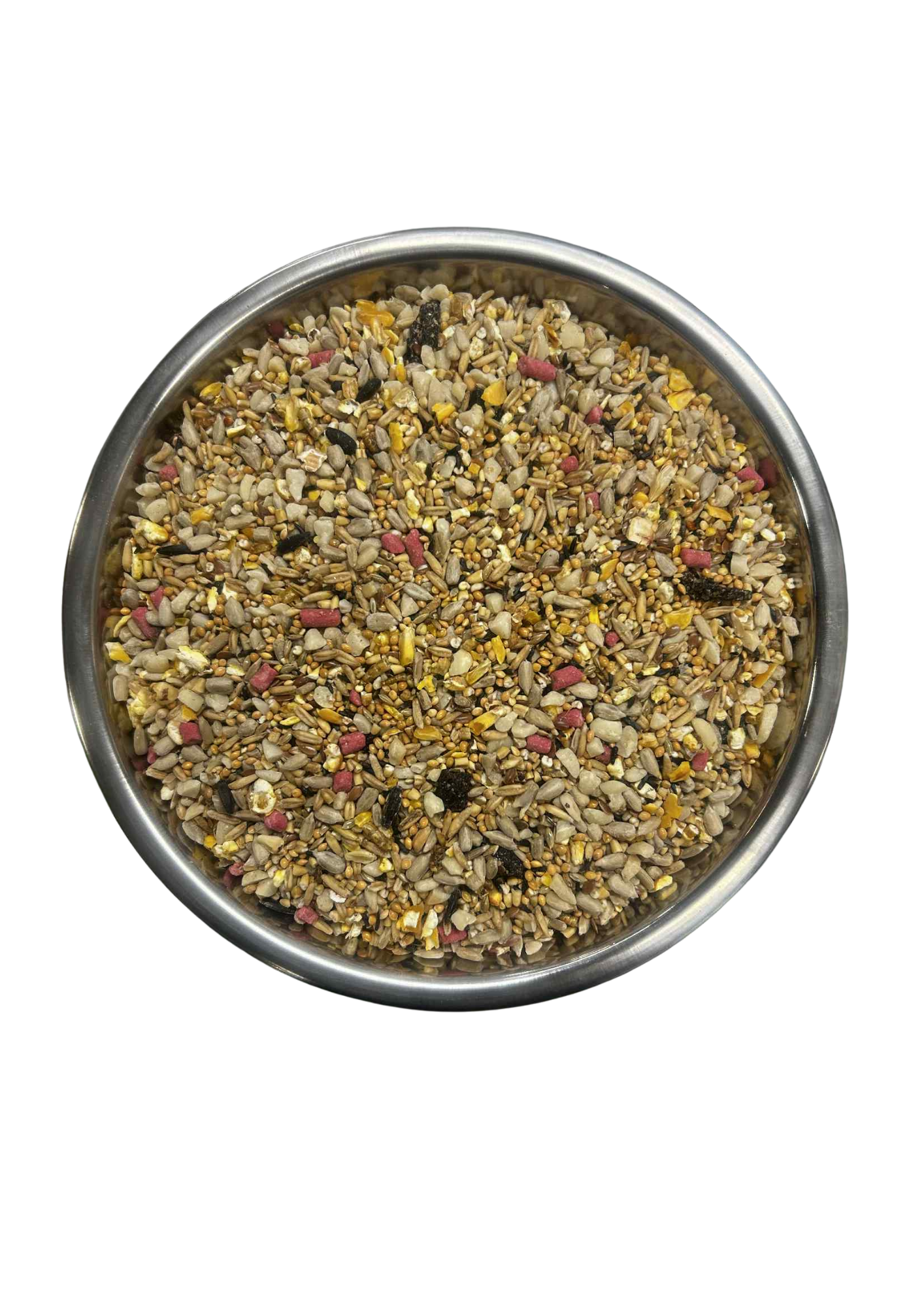 Ingredients: pinhead oatmeal, sunflower hearts, groats, kibbled maize, linseed, plain canary seed, nyjer seed, raisins, mealworms, yellow millet, peanut granules, fruity suet pellets.